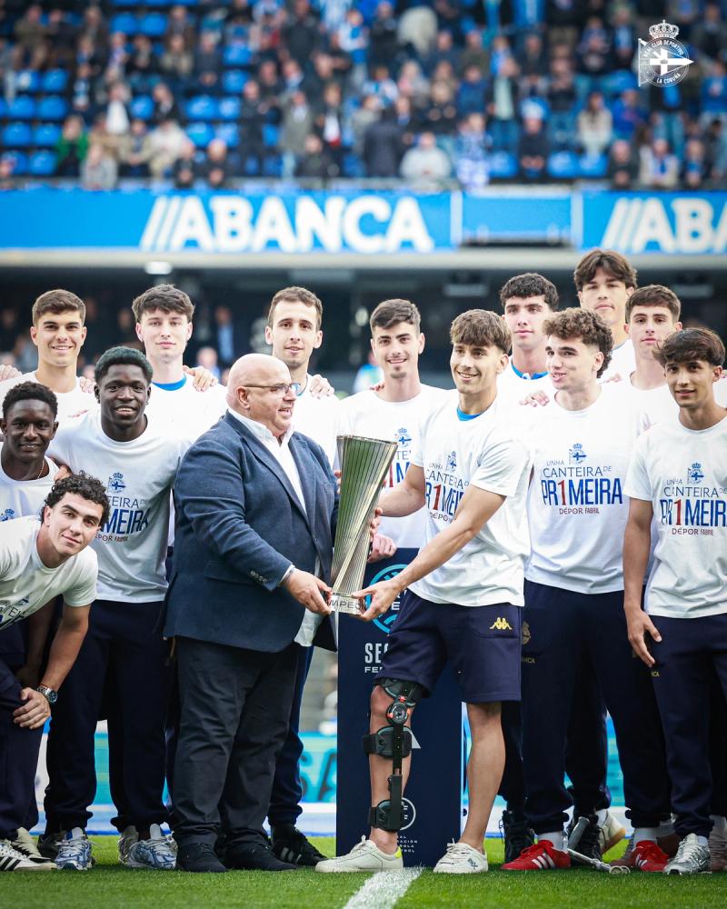 Intensa xornada en ANOSACANTEIRA, esta vez con todos os partidos en fin de semana.O Cadete - RC Celta da División de Honra, ás 11:30 no campo Arsenio Iglesias, é o partido destacado.Os branquiazuis avantaxan en 1 punto aos célticos na loita polo título con 3 partidos por diante.Tamén certificará a medalla de ouro o Alevín A en Primera Futgal A Coruña se puntúa ante o Olímpico CF, ás 12:00 en Vilaboa.Os deportivistas teñen 6 puntos de renda sobre o Victoria CF, 2º clasificado.En canto ao resto de categorías compiten en casa o San Tirso SD Cadete ante a SD Compostela (10:00 no Monte), o Infantil ante o Victoria CF (10:15 no Dépor Training Center), o Fabril FC Alevín fronte ao CD Calasanz (13:30 na Torre) e o Fabril FC Benxamín ante o ED Luis Calvo Sanz (10:30 na Torre).Por contra, o Xuvenil B visita ao CD Choco (12:30 no campo de Santa Mariña en Redondela), o San Tirso SD Infantil ao RC Celta (16:00 na Madroa) e o Benxamín A ao Oza Juvenil SD (11:30 en La Torre).Para o domingo 26 ás 12:00 () queda o partido do Fabril no campo Arsenio Iglesias ante o Real Valladolid.Os fabrilistas viviron unha semana de festexos coa entrega do trofeo de campión de liga en ABANCA-RIAZOR o pasado luns 20 e coa recepción no concello da Coruña o martes 22.O Club mantén activo o protocolo de apertura con rexistro de asistentes do campo Arsenio Iglesias para o partido.Poden retirar entradas dispoñibles, até esgotar a bancada e sen ningún custo adicional, todos os socios e socias do RC Deportivo que o tramiten formalmente a través da web , na que deberán introducir a súa ID de socio e o pin. A continuación, seleccionar unha localidade libre e posteriormente completar os seus datos de contacto e a dirección de correo electrónico onde recibir a entrada.Con eses mesmos datos doutras persoas socias, unha única pode retirar máis dunha entrada nunha soa xestión e, deste xeito, seleccionar asentos contiguos ou próximos.Este procedemento ten dous fins: poder solicitar e recibir a entrada e, ademais, levar un control de repartición e localización na instalación.O RC Deportivo solicita que unicamente tramiten a entrada aqueles socios e socias que vaian poder acudir ao partido, para evitar que queden afeccionados sen poder asistir unha vez completado a repartición dos asentos nun proceso 100 % telemático.Tamén está habilitado o sistema de venda de entradas para o público en xeral, a través da mesma plataforma en e seguindo o preceptivo sistema de rexistro e pago de localidade.O prezo de cada entrada para afeccionados sen carné do RC Deportivo é de 10 euros.Ademais, o Xuvenil A recibe no Dépor Training Center ao Atlético Coruña Montañeros CF (16:30) e no trofeo Conservas Calvo de fútbol 11 o Alevín visita ao CMI Club de Campo na Gándara (Ferrol).
